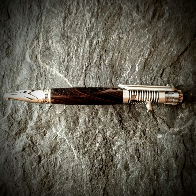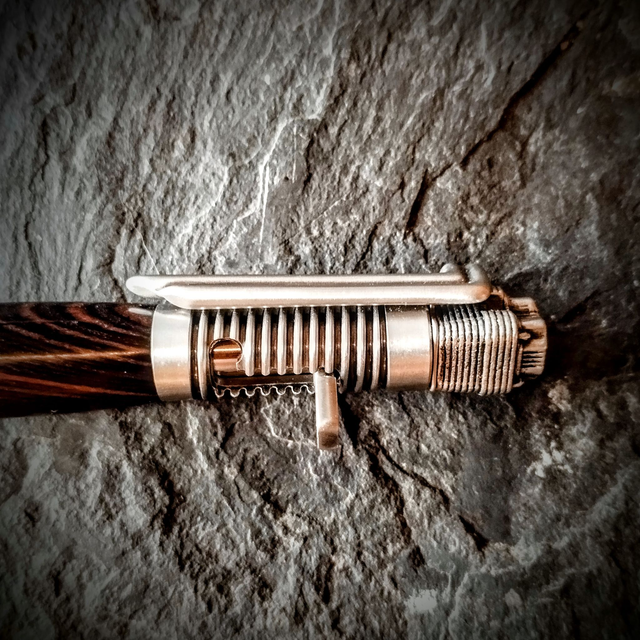 Le kick vous permet de sortir la mine et le tuyau d'échappement se transforme en barrette. La pointe du stylo représente une tête d'Aigle au dessus de laquelle sont gravé les mots "Ride Hard, Live Free".
