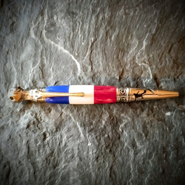 Bois teintés collés, bleu blanc rouge.